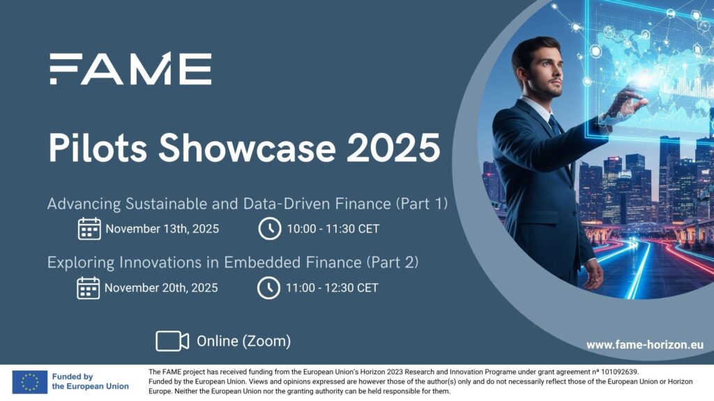 - “Exploring Innovations in Embedded Finance” (Pilots 1–4), focusing on digital finance services for citizens and SMEs. This workshop will take place on Thursday, November 20th.